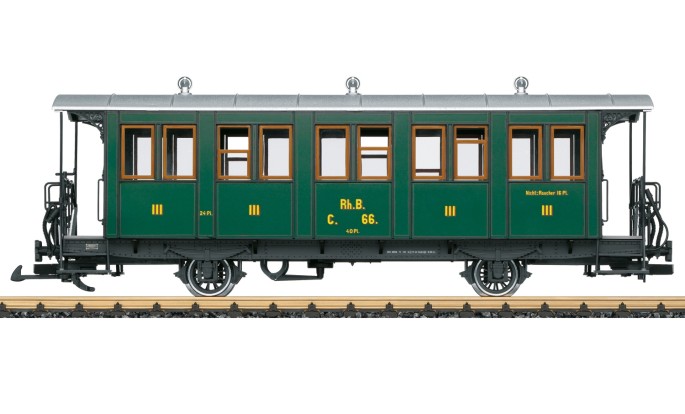 Das LGB Modell bildet einen Personenwagen der 3. Klasse der RhB nach. Ausführung in der grünen Farbgebung der damaligen Landquart-Davos-Bahn, so wie der Wagen heute bei der RhB als Museumswagen im Einsatz ist. Originalgetreue Farbgebung und Beschriftung.